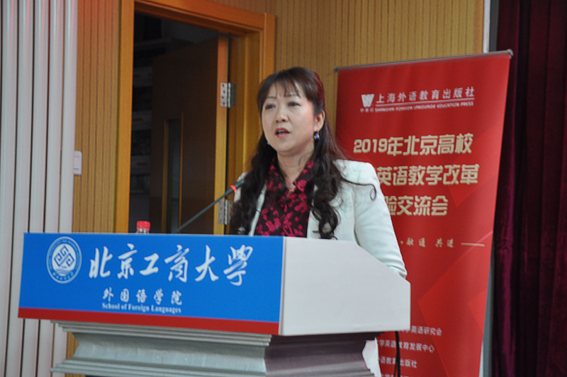 4月4日,由北京市高等教育學會大學英語研究會、北京高校大學英語教育發展中心、上海外語教育出版社和我校外國語學院共同舉辦的2019年北京高校大學英語教學改革經驗交流會在阜成路校區召開。會議以“守正 創新 融通 共進”為主題,探索新時代大學英語教學如何堅守本質,并在砥礪前行的征途中不斷創新。我校副校長謝志華教授、北京市教委高教處處長劉霄、北京市高教學會大學英語研究會理事長張文霞教授、北京高校大學英語教育發展中心主任張喜華教授、上海外語教育出版社副社長葉青出席會議。