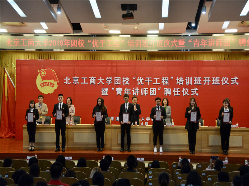 為紀(jì)念五四運(yùn)動(dòng)100周年,落實(shí)我校慶祝新中國(guó)成立70周年“我和我的祖國(guó)”愛(ài)國(guó)主義主題教育活動(dòng)方案部署,將共青團(tuán)思想引領(lǐng)工作常態(tài)化深入基層、走進(jìn)青年,通過(guò)進(jìn)團(tuán)課、進(jìn)支部、進(jìn)網(wǎng)絡(luò),開(kāi)展面對(duì)面、互動(dòng)性的宣講交流,激勵(lì)和引領(lǐng)全校廣大青年真正在內(nèi)心深處堅(jiān)定不移聽(tīng)黨話、跟黨走,著力打通青年理論武裝工作“最后一公里”,校團(tuán)委在全校選拔了40名政治堅(jiān)定、善于面向青年傳播黨的理論主張的優(yōu)秀青年師生組成“青年講師團(tuán)”。校團(tuán)委書(shū)記王海偉宣讀了北京工商大學(xué)“青年講師團(tuán)”聘任決定,與會(huì)領(lǐng)導(dǎo)為“青年講師團(tuán)”講師們頒發(fā)了聘書(shū)。