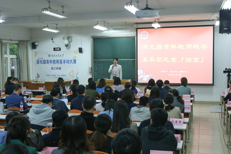 4月24日下午,由教務處、校工會和網絡中心聯合舉辦的學校第九屆青年教師教學基本功比賽在阜成路校區舉行。來自11個教學單位的18位青年教師通過學院的預賽和復賽最終進入學校總決賽,一展教師風采和教學實力。學校副校長謝志華、鄭文紅分別到文科組和理工科組決賽現場觀摩并講話,240余名教師和學生代表觀摩了比賽。