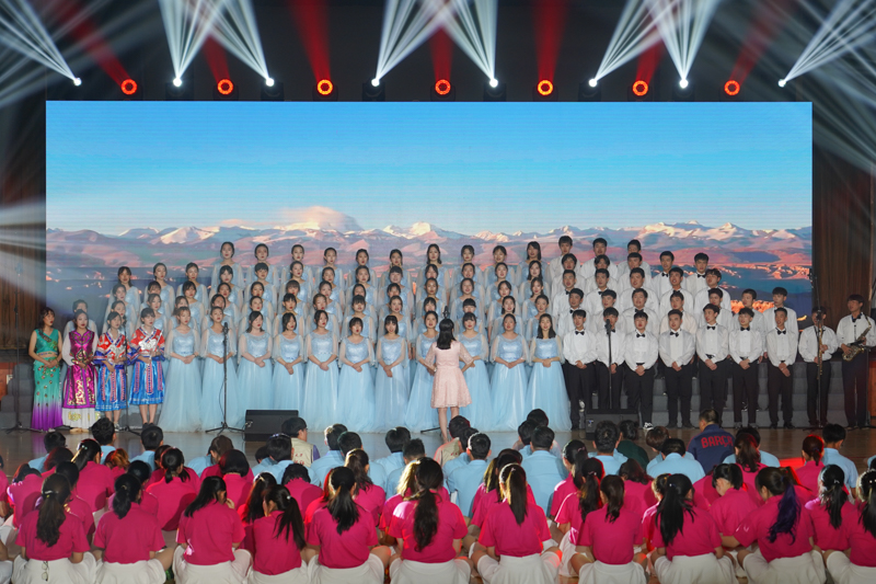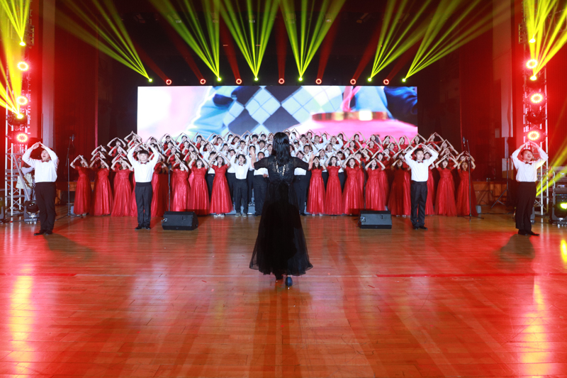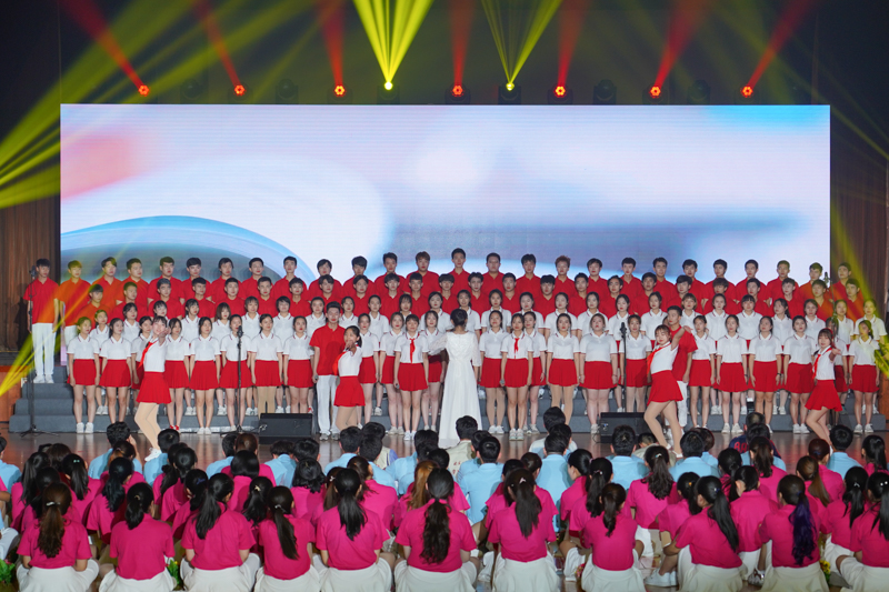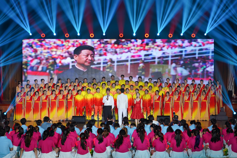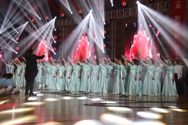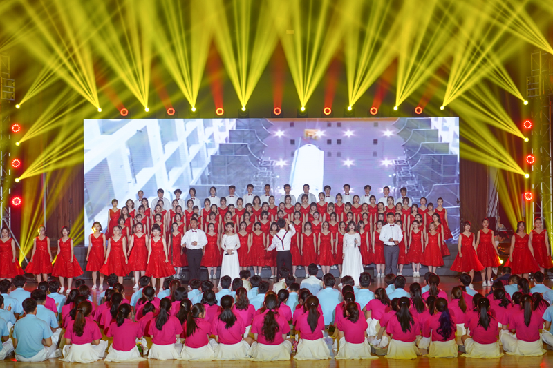 隨后,歌會進入了下篇——新征程,回望歷史成就,踏向新征程。這一百年是奮斗的一百年,是進取的一百年,我們的青年前仆后繼投入到建設國家的光榮道路上,一百年是個節點,象征著我們的青年踏向了新的征程!理學院的《國家》《新的天地》蓬勃向上,飽含著青年學子對祖國新天地的向往和面對未來征程的必勝之心;計算機與信息工程學院的《我和我的祖國》《強國一代有我在》歌曲旋律優美,磅礴大氣,充滿了活力與激情,機器人動感的舞蹈配上同學們充滿活力的演繹,將活動推向高潮;在簡潔快速的交換場地后,法學院激情獻唱的《紅旗飄飄》《邁向新征程》鏗鏘有力,慷慨激昂,為歌會帶來了精彩難忘的收官。