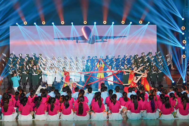 在青春靚麗的開場舞《青春暢想》之后,在場的共青團員進行了莊嚴的入團宣誓,青春歌會隨之拉開序幕。此次歌會分為新時代、新夢想、新征程三個篇章。9個學院的參賽隊伍依次登場。各代表隊精神抖擻,用嘹亮的歌聲表達出傳承和發揚革命光榮傳統的堅定信念。青春歌會向祖國獻禮,祝福祖國繁榮昌盛,展現新時代的青年為祖國美好的明天貢獻力量。