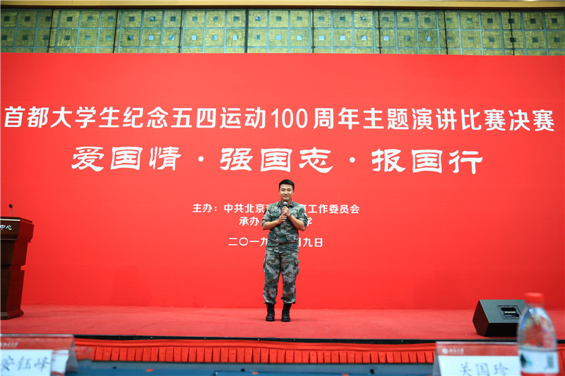 比賽中,歷經(jīng)層層選拔脫穎而出的首都高校15名決賽選手結(jié)合親身經(jīng)歷,講述自己對五四精神的理解、對愛國主義的體會、對青年使命的感悟。我校選手王巡東曾是一名光榮的野戰(zhàn)軍士兵,他戎裝一身,英姿颯爽,以《攜筆從戎酬壯志 護國衛(wèi)民勇爭先》為題,結(jié)合自身從軍入伍的經(jīng)歷、保家衛(wèi)國的精神、退伍不褪色的熱情,進行了一場激情滿懷、鏗鏘有力的演講,充分展示了北工商青年的風采,“國防建設,我必到,人民需要,我必到,祖國召喚,我必到”的英勇宣誓更是扣動了現(xiàn)場每一位觀眾的心弦,得到專業(yè)評委和大眾評審的高度認可,獲得了在場觀眾的熱烈掌聲。最終經(jīng)評審團評審,王巡東脫穎而出,以第一名的成績獲得決賽一等獎。
