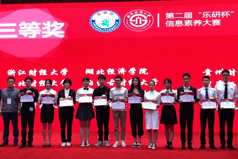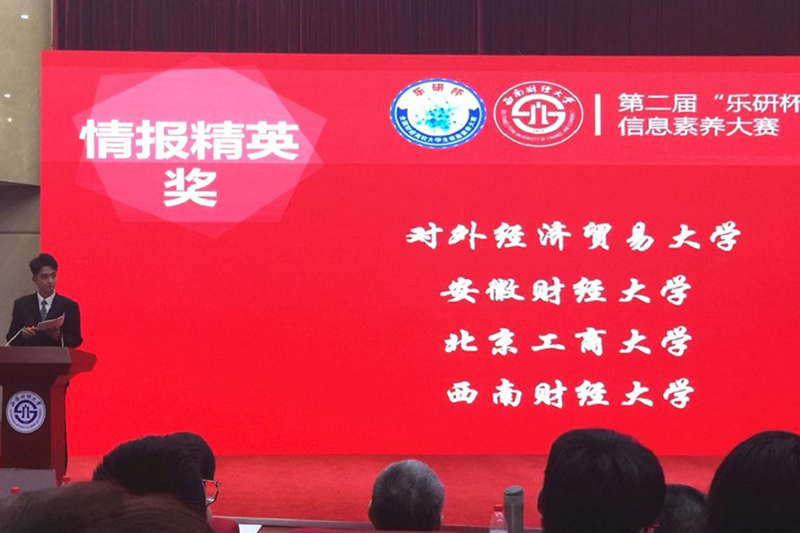 5月18日,第二屆“樂研杯”全國財經高校大學生信息素養大賽全國總決賽在西南財經大學落下帷幕,由我校經濟學院劉文婕、楊薈瑞、陳盛濤3位同學組成的參賽團隊,與來自全國其他40所財經高校代表隊同臺競技,榮獲全國總決賽三等獎和“情報精英獎”,學校圖書館獲得優秀組織獎。
