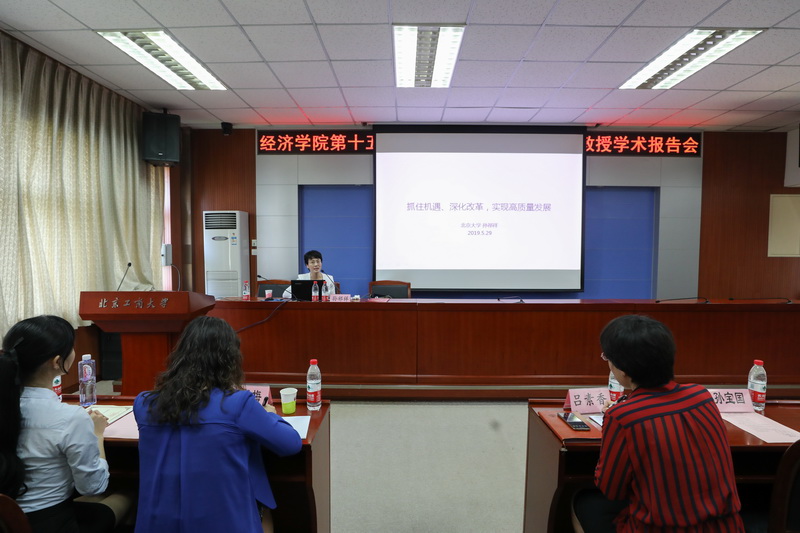 孫祁祥教授在致辭中表示,能夠被聘任為北京工商大學(xué)客座教授,倍感榮幸,也深覺責(zé)任重大,同時也對經(jīng)濟學(xué)院在應(yīng)用經(jīng)濟學(xué)博士點申報、北京市高精尖學(xué)科建設(shè)上取得的成績表示祝賀,她愿意盡全力繼續(xù)為學(xué)北京工商大學(xué)學(xué)科建設(shè)貢獻自己的力量。