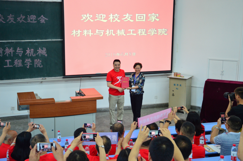 理學院召開了師生座談會,組織了“傳承青春夢想”為主題的職業(yè)生涯訪談,老校友們在參觀新校園,感受了學校的發(fā)展和變革;食品學院上午和下午分別舉行了“促膝再談心——學院紀念大會”“校友領航人生路——校友與在校學生座談會”,在校友與在校學生之間建起了溝通的橋梁,跨年代的交流讓老一輩回味青春歲月,年輕一輩汲取過來人的經驗;材機學院組織的座談會帶校友們回到了大學課堂,每個人輪流上臺回答,氣氛活躍熱烈;計信學院做了精心布置,其中高鐵車票主題的背景展板引來校友們爭相合影留念,記錄青春芳華。一位來自食品051的校友說:“今天一回到校園,志愿者們特別熱情,不僅送小禮物還很有耐心地幫我和老同學們拍照,希望咱們學校的發(fā)展能夠得到更多校友的幫助,大家共同進步。”