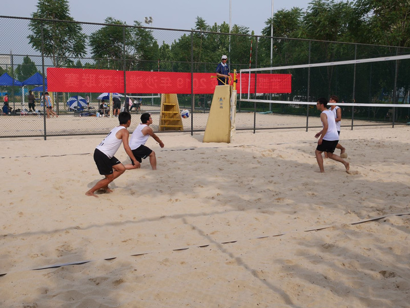 6月1日小組賽在我校良鄉校區進行,經過一整天的激烈比賽,我校男排三戰全勝,以小組第一的成績出線,女排也順利進入4強。6月7日,半決賽在中央財經大學舉行。男排以15:13戰勝勁旅華北電力大學進入決賽。決賽中,面對勢頭正盛的北京聯合大學,教練根據對手陣容特點作出人員調整,最終以2:0大比分無懸念的奪得冠軍,完成了沙灘排球聯賽三連冠的好成績。女排半決賽的對手是實力強勁的中央民族大學女隊,隊員們領先時不放松,落后時不氣餒,憑借頑強意志順利進入決賽。在決賽中,再次遇到小組賽勝過我隊的北京聯合大學,女排隊員不畏強敵,勇于發揮,最終以2個21:17戰勝對手,時隔4年再次獲得沙灘排球賽冠軍。