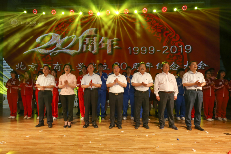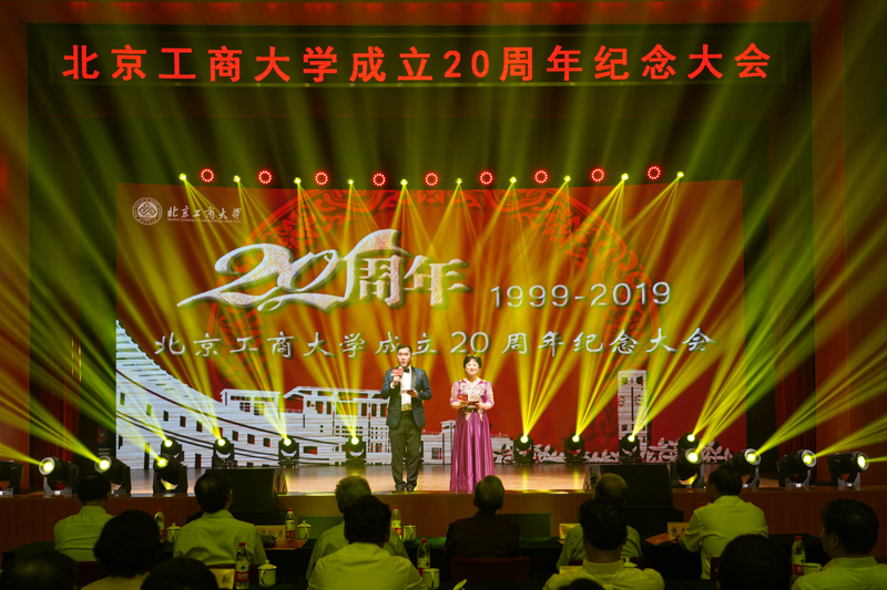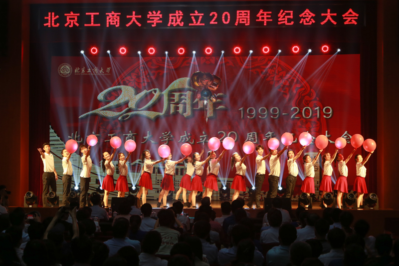 風雨兼程二十載,砥礪奮進新時代。6月12日,北京工商大學成立20周年紀念大會在阜成路校區東區禮堂隆重舉行。學校黨委書記黃先開,校長孫寶國,原校長蘇志平,原黨委書記王守法、孫堯東、譚向勇,黨委副書記張德玉,副校長張耘、鄭文紅、賈英民、方德英,與兩校區的兩千余名師生共同回顧20年來學校取得的輝煌成就,慶祝這一具有歷史意義的時刻,展望美好未來。教師許莉、張龍主持紀念大會。
