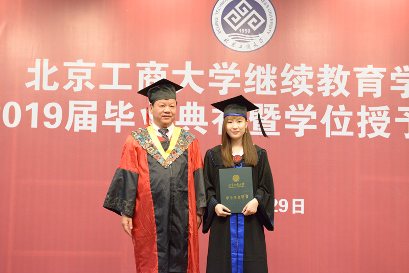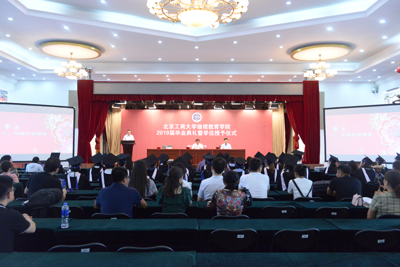 施楓宣讀《北京工商大學(xué)繼續(xù)教育學(xué)院關(guān)于2019屆成人教育學(xué)生準(zhǔn)予畢業(yè)及授予學(xué)位的決定》《北京工商大學(xué)繼續(xù)教育學(xué)院關(guān)于表彰2019年榮譽(yù)教師的決定》《北京工商大學(xué)繼續(xù)教育學(xué)院關(guān)于表彰2019屆優(yōu)秀畢業(yè)生的決定》《北京工商大學(xué)繼續(xù)教育學(xué)院關(guān)于表彰2019屆優(yōu)秀學(xué)生干部的決定》。2019屆共有192人畢業(yè)獲得畢業(yè)證書,包含應(yīng)屆、往屆兩類,高起本、專升本、專科三個層次。其中51名學(xué)生被授予學(xué)士學(xué)位。