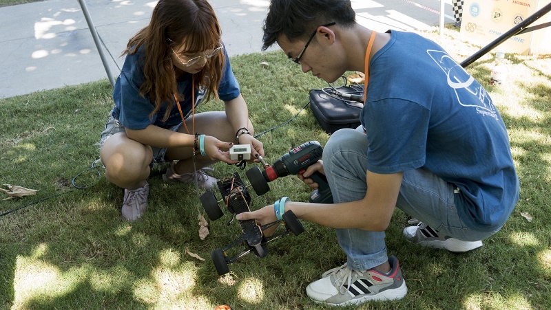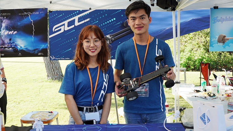 我校SCC車隊由來自藝術與傳媒學院產品設計專業張曉剛、歐宇辰、胡少梅及來自材料與機械工程學院機械工程及自動化專業柳祥林共同組成,其中,兩名隊員歐宇辰和柳祥林代表車隊參加了總決賽。此次ACCD的比賽場地與國內訓練的場地完全不同,賽場因地制宜,以校園水泥路面為賽道,賽道邊界直接為校園建筑的水泥墻體及草坪,由于灌木及樹木的阻擋造成了視野的盲區,加大了比賽難度。兩名同學在隊伍人手不足的情況下,克服了時差和場地的差異,沉著冷靜,互幫互助,在場外梁珣老師的悉心指導下,發揮出色,以學生組預賽第一的成績脫穎而出,并以拉力競速賽第一名、爬坡競速賽第一名、障礙競速賽第二名的成績獲得進入三項單項賽決賽的資格。SCC車隊扎實的設計實力和卓越的賽場表現給評委、在場賽隊與觀眾留下了深刻印象。來自不同院校、企業的參賽隊伍同場競技、相互切磋、深入交流,成為了志同道合的好朋友。