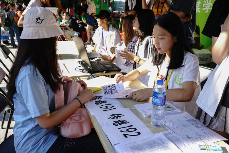 與往年一樣,學校繼續(xù)沿用了“互聯網+”報到模式,學生可通過掃描二維碼進入“智慧校園”系統(tǒng),完成入校資料填寫,查詢學校相關情況資料等。這不僅為新生提供了方便,還大大提高了報到效率。來自經濟學院的劉軒媛談到:“‘智慧校園’簽到的方式非常新穎,很特別也很有意思,讓我感受到了科技的力量。”報到現場,大家還可以通過電子大屏,隨時了解到學校和各學院新生報到注冊人數以及各時段新生報到情況,充分體現了大數據時代的服務升級。