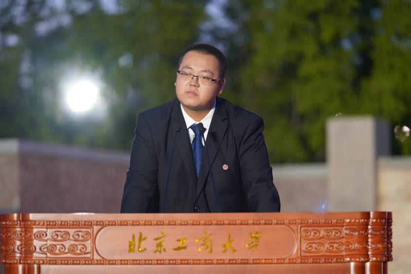 經(jīng)濟(jì)學(xué)院金融192班崔涵代表新生發(fā)言。他對(duì)大家通過(guò)刻苦努力成為北工商的一員表示祝賀,對(duì)家長(zhǎng)們無(wú)微不至的照顧表示感謝。他談到,選擇北工商,是選擇少一些盲從,多一些求真;是選擇少一些世俗,多一分品德;是選擇少一點(diǎn)懶惰,多一點(diǎn)勤奮;是選擇少一些守舊,多一些創(chuàng)新;是選擇求真、立德、勤奮、創(chuàng)新。要保持求得真學(xué)問(wèn)的初心,用勤奮去拼搏、去創(chuàng)造、去澆灌夢(mèng)想,不負(fù)青春,不負(fù)光陰。他倡議大家牢記校訓(xùn),追求真理,崇德立身,勤奮學(xué)習(xí),開拓創(chuàng)新,努力成長(zhǎng)為可以擔(dān)當(dāng)國(guó)家富強(qiáng)和民族復(fù)興重任的新時(shí)代青年!