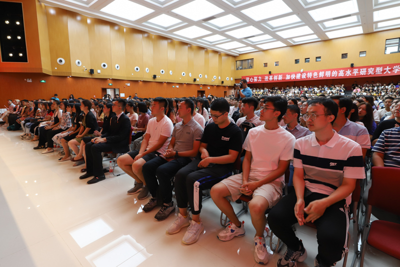 8月31日,2019級研究生新生集中入學(xué)教育在東區(qū)禮堂舉行,副校長賈英民教授為研究生新生講授開學(xué)第一課。研究生院相關(guān)人員、各學(xué)院研究生輔導(dǎo)員以及2019級研究生新生約1180人參加了集中入學(xué)教育。