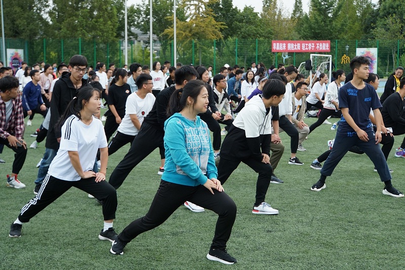 除晨跑外,部分學院組織同學們開展籃球、羽毛球等運動項目,藝傳學院別出心裁的組織同學們開展“不倒森林”素質拓展活動,充分調動了同學們參與的熱情和積極性,一串串清脆的笑聲彰顯著青春的活力。部分學院的黨委副書記和輔導員們,身著運動服和運動鞋參與其中,和同學們一起開展鍛煉。