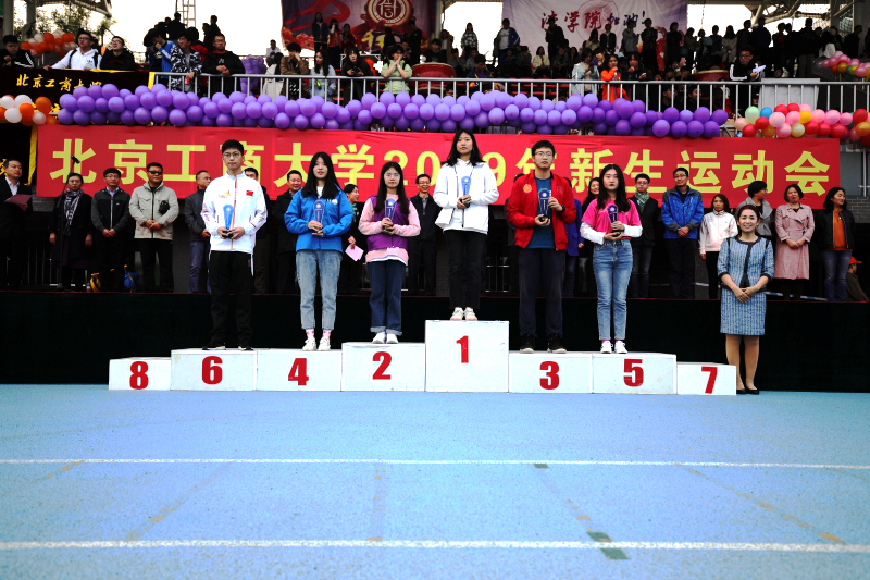 與會領導宣讀了比賽成績并為獲得田徑男女團體總分前八名、男子團體總分前八名、女子團體總分前八名和趣味項目團體總分前六名的學院分別頒發了獎杯。商學院獲田徑男女團體總分第一名和田徑男子團體總分第一名,經濟學院獲田徑女子團體總分第一名,藝傳學院獲趣味項目團體總分第一名。此外,材機學院、理學院、外國語學院、數統學院獲得最佳啦啦隊,計信學院、商學院、經濟學院、藝傳學院獲得精神文明獎,研究生院獲得突出貢獻獎。頒獎儀式現場,歡呼聲此起彼伏,掌聲經久不息。