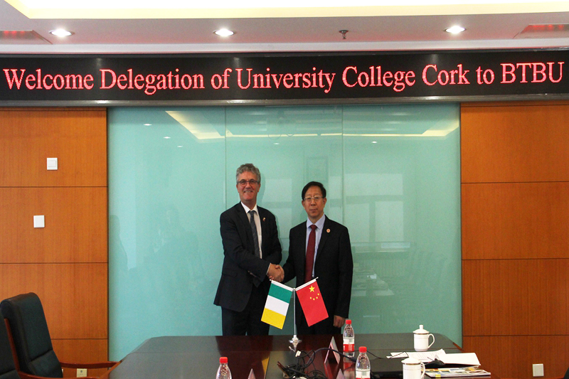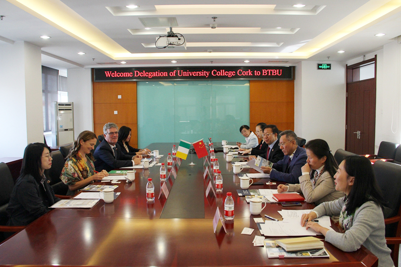 10月21日上午,愛(ài)爾蘭國(guó)立考克大學(xué)常務(wù)副校長(zhǎng)約翰·哈羅蘭(John O'Halloran)一行四人訪問(wèn)我校。孫寶國(guó)校長(zhǎng)在阜成路校區(qū)會(huì)見(jiàn)了代表團(tuán)一行,會(huì)談?dòng)芍x志華副校長(zhǎng)主持。