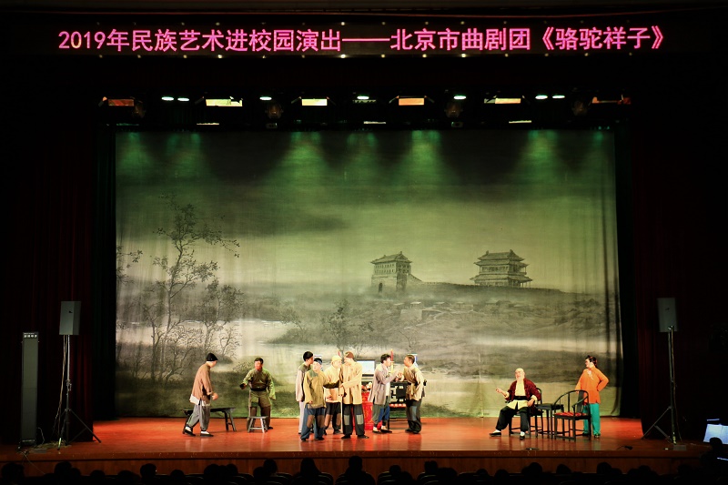 11月6日,2019年團(tuán)校“星火工程”培訓(xùn)班第二講暨2019年民族藝術(shù)進(jìn)校園專場演出在良鄉(xiāng)校區(qū)舉辦,北京市曲劇團(tuán)演出了經(jīng)典劇目《駱駝祥子》。