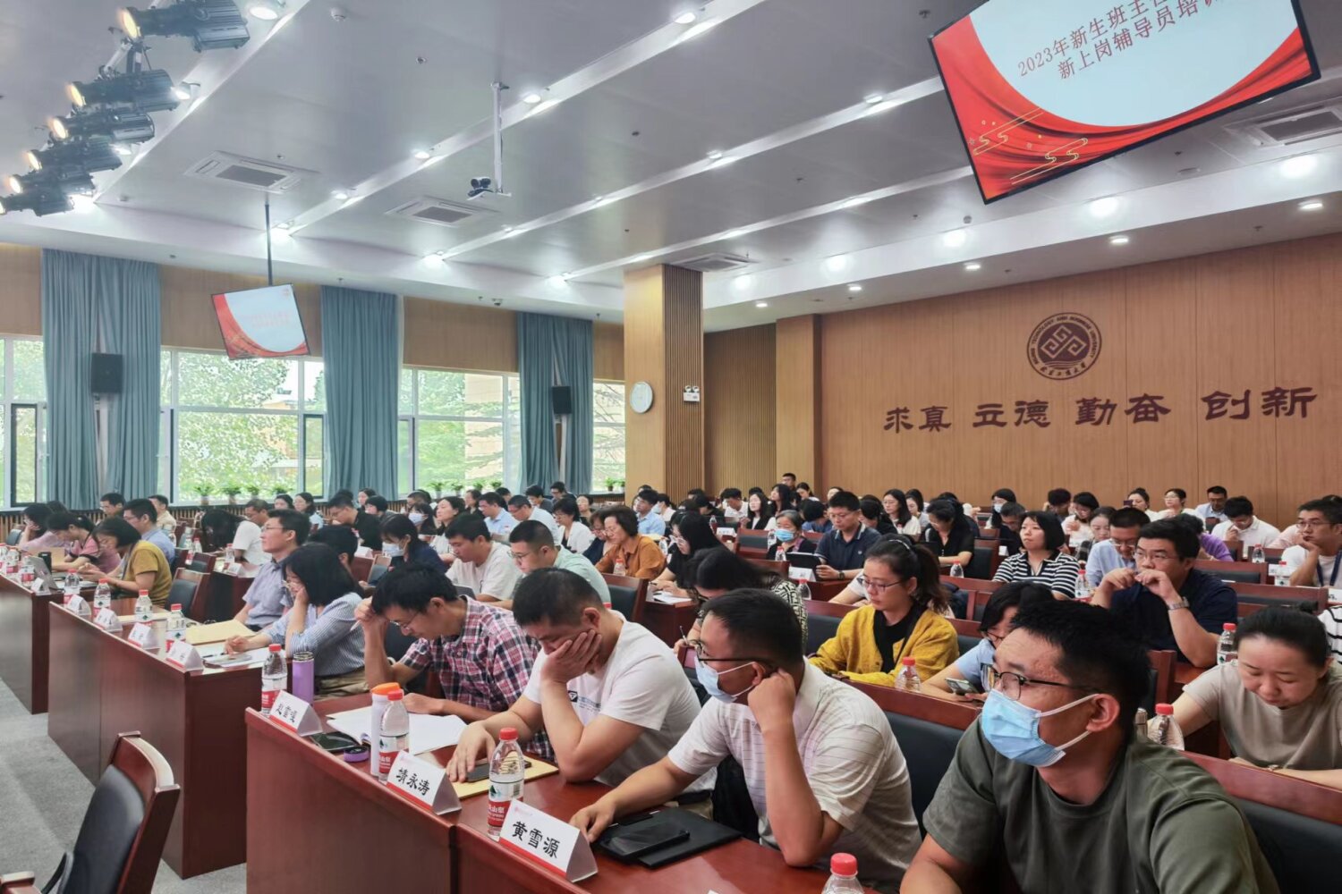 8月31日,學校2023年新生班主任輔導員培訓在阜成路校區舉辦。本次培訓內容涵蓋學工隊伍落實立德樹人的使命擔當、優秀班主任工作經驗分享、大學生心理健康教育、意識形態工作與輿情應對、階梯式思想政治教育及迎新工作安排等,來自各學院的130余名新生班主任、輔導員,以及2023年新上崗的輔導員參加培訓,會議由學生處處長呂良主持。