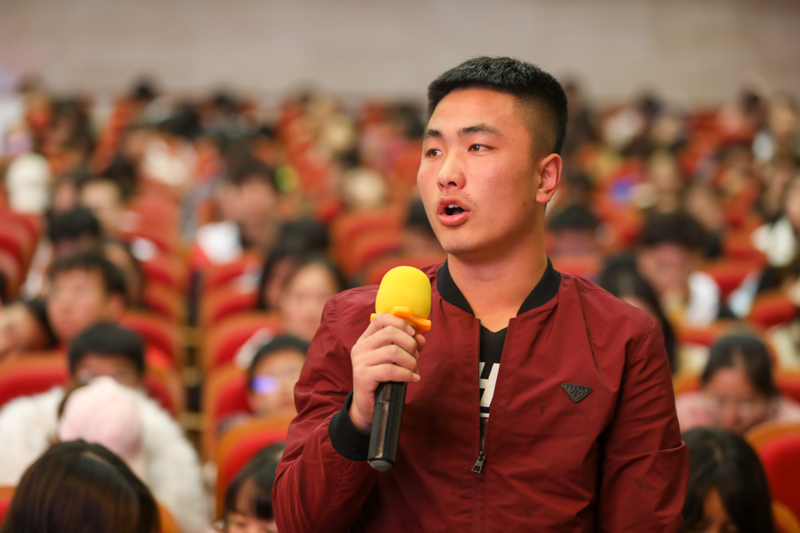 今年同為紅軍長征出發85周年,為了使同學們更加深刻了解長征精神,袁本文教授提出三個問題即什么是長征精神?長征精神是如何激勵紅軍們前進的?當代大學生如何確定自己的信仰?并一一闡述,輔以故事,生動形象,將講座推向高潮。最后,袁本文教授引用習總書記的發言,強調新時代青年青少年應當有信仰,并要勇于承擔時代責任,培育起自己的信仰,堅定自己的信仰,用奮斗尋找每個人的幸福,用奮斗實現中華民族的偉大復興夢!
