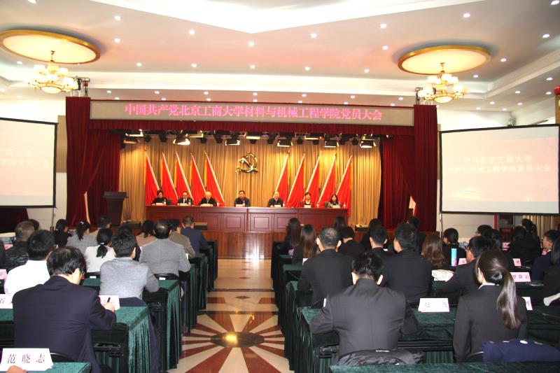 大會在莊嚴的國歌聲中拉開帷幕。張國龍宣讀了學校黨委《關于同意中共北京工商大學材料與機械工程學院召開黨員大會的批復》。