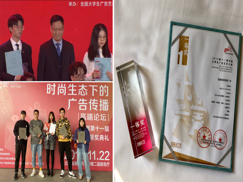 11月23日,由中國高等教育學會、教育部高等學校新聞傳播學類專業教學指導委員會主辦的第11屆(2019)全國大學生廣告藝術大賽(以下簡稱大廣賽)頒獎典禮在京舉行。我校藝術與傳媒學院廣告專業學生作品榮獲全國一等獎、三等獎。視傳專業與數媒專業學生取得了全國二等獎、三等獎。