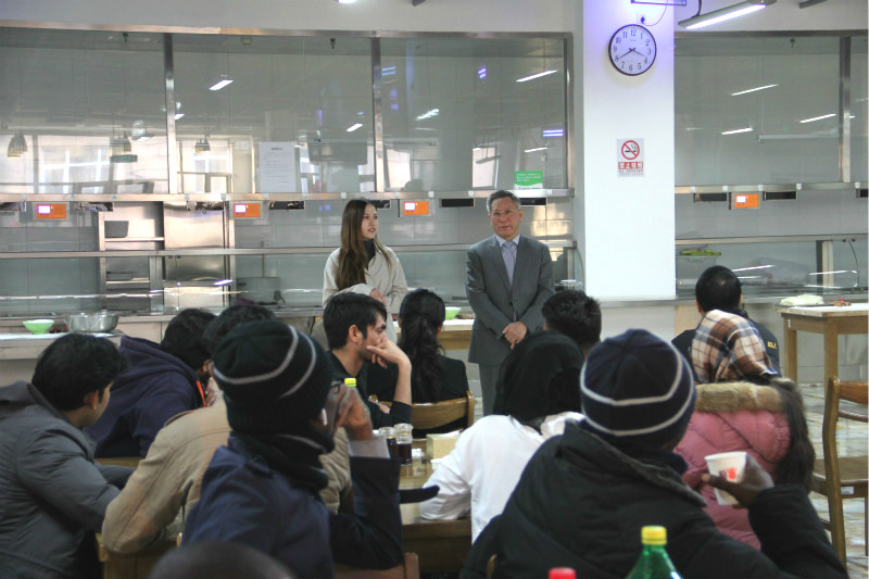 謝志華副校長致辭,他向同學們介紹了冬至吃餃子的習俗,強調了各種文化交融的重要性,希望大家可以通過包餃子活動深入學習體驗中國的文化習俗,并?;顒訄A滿成功。他希望同學們融入北工商,珍惜在校學習和生活的機會。