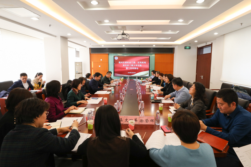 通州區委社會工委副書記李宗秀介紹區委社工委、區民政局基本情況。我校研究生院院長徐丹丹介紹了學校學科建設、研究生人才培養、社會服務等情況;科技處處長左敏介紹了我校科研項目、科研成果及與副中心相關的在研課題情況;學生處處長呂良從支部共建、學生實踐等領域展望了合作領域和對接形式。藝術與傳媒學院黨委書記高麗華、法學院黨委書記馬韜光、商學院黨委書記張春萍分別介紹了本學院的學科專業情況,表示會充分發揮學院優勢開展與通州社會工委、民政工作的合作與對接。