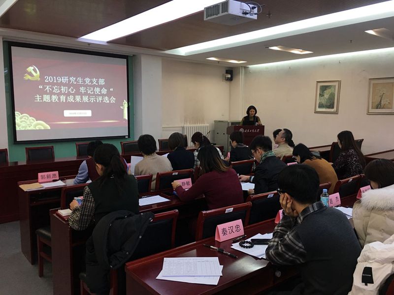 12月27日上午,2019年研究生黨支部“不忘初心、牢記使命”主題教育成果展示評選會在阜成路校區召開。研究生院院長兼研工部部長徐丹丹出席會議,各學院負責研究生工作的副書記、輔導員、研究生黨支部書記代表共計40余人參加會議。會議由研究生院副院長兼研工部副部長郭新愿主持。