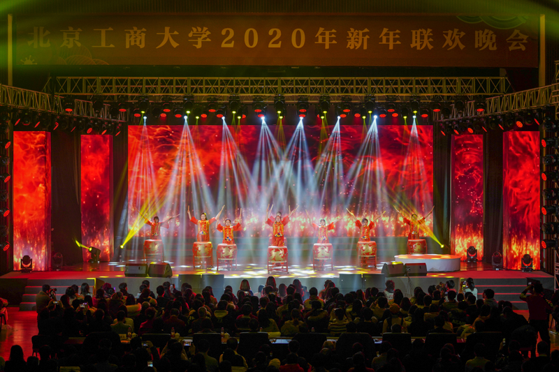 在精彩的開場視頻和倒計時聲后,商學院舞蹈隊帶來《鼓韻工商》,鏗鏘有力的鼓聲、曼妙婀娜的舞姿拉開了整場晚會的序幕。