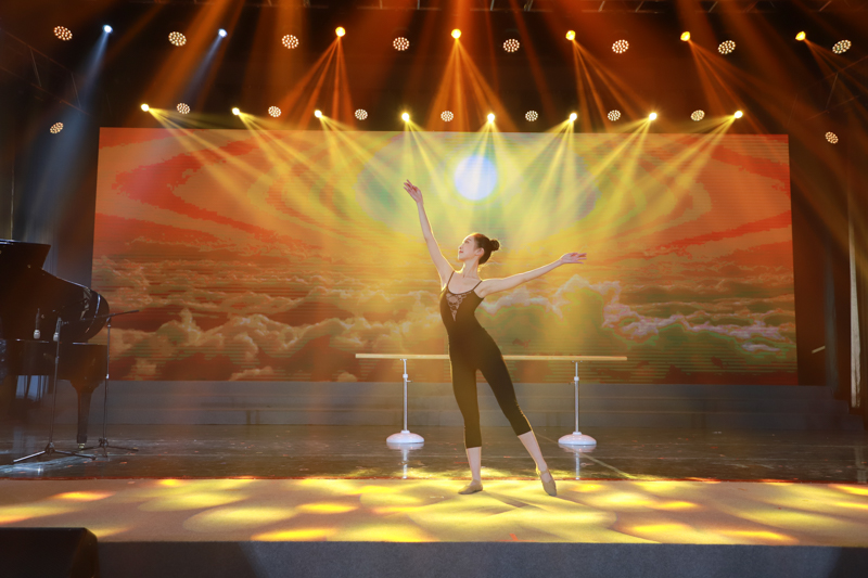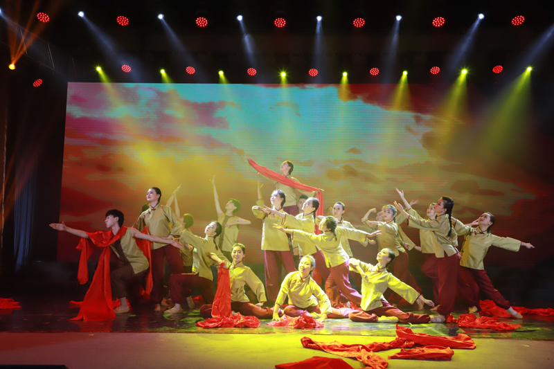 校合唱團、舞蹈團帶來的《那些歲月》,琴聲悠揚婉轉、歌聲娓娓動聽、舞姿曼妙優美,展現了共產主義為新中國崛起指明了方向;校學生會帶來的朗誦表演《光明的信仰》慷慨激昂,將李大釗、趙一曼、楊靖宇、江竹筠四位英烈的堅貞品性與堅定信仰刻畫得淋漓盡致;舞蹈團表演的《東方紅》英姿颯爽,紅綢飄揚,帶領觀眾重溫光輝歲月;由管樂團演繹的《草原夜色美》意境優美、《紅旗頌》大氣磅礴,樂手們的精彩演繹奏出了各族人民安居樂業,中華民族崛起的時代跫音。