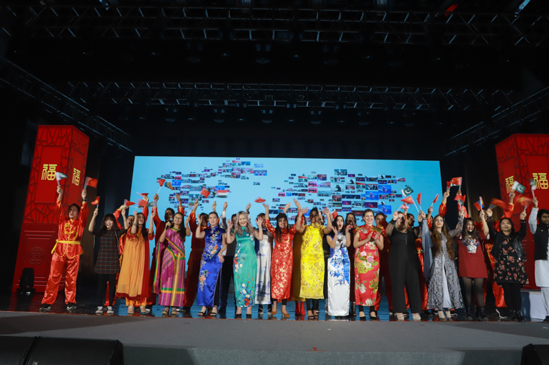 晚會第二章以“騰飛的新中國”為主題,學校樂團與留學生們共同為全校師生帶來一場精美絕倫的視聽盛宴。中西方文化的交融碰撞異彩紛呈,將整場晚會推向高潮。