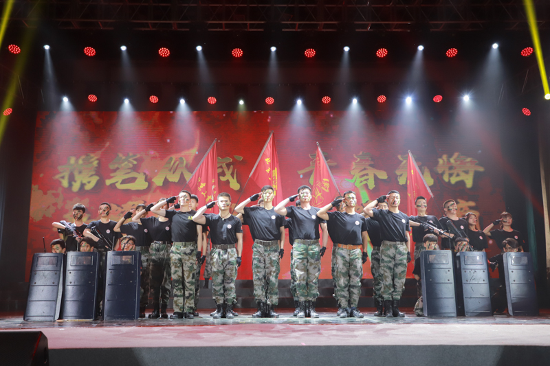 在晚會第三章“奮進的新中國”中,學校國防社、運動隊及學生社團精心準備的節目抒發了北工商學子的濃濃愛國情、深深報國志,引起現場觀眾的強烈共鳴。