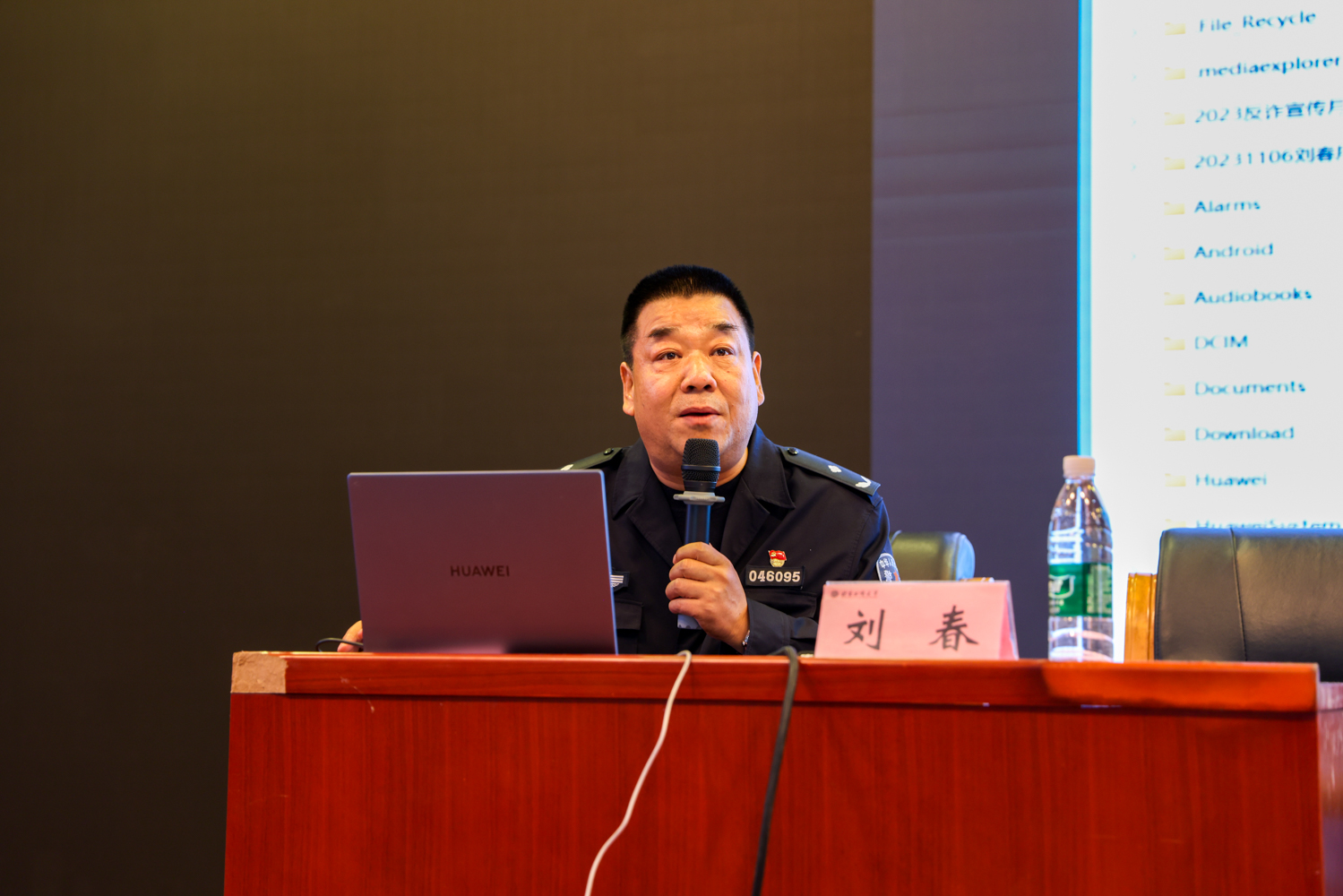 保衛處處長孫磊部署反詐專家入班級活動安排,明確反詐顧問、學生反詐專員工作職責,介紹活動流程和工作重點。拱辰派出所所長朱振華介紹當前房山區和良鄉高教園區高校系統電信網絡詐騙案發形勢,并深入分析我校電信網絡詐騙發案特點,針對高發的刷單返利、虛假投資等多種詐騙類型、作案方式、防范要點等進行了重點剖析。反詐專員代表經濟231班的季時如同學代表全體反詐專員進行表態發言。學校校長助理楊天路最后對學校下步預防電信網絡詐騙提出三點要求,一是保衛處、學生處、研究生院要加強對詐騙案件的分析研判,總結規律特點,找出主要問題和薄弱環節,有針對性地采取措施,出臺有效的機制和制度。可以將各學院反詐成效納入學院學生日常管理的考核,納入班級和個人評獎評優工作,最大程度上引起學院、班級和學生個人的高度重視;二是反詐專員要切實發揮學生骨干、學生黨員的先鋒模范帶頭作用,主動學習和傳播反詐知識,關注班級同學可能遇到的被騙苗頭,及時和反詐專家溝通請教,努力成為反詐常識的傳播者、詐騙隱患的觀察員、班級防詐的橋頭堡,共同推進“無詐校園”的工作目標。三是各相關部門、學院要做好此次反詐專家入班級活動的跟蹤、保障、激勵和總結工作,不斷探索經驗,凝練特色,力爭為北京高校反詐工作提供北工商智慧。