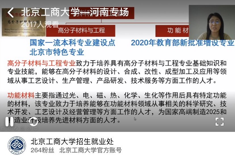近期,學(xué)校招生就業(yè)處還參加了北京人民廣播電臺《教育面對面》高招直播和“人民網(wǎng)”高招直播。5月18日,學(xué)校招生就業(yè)處和騰訊網(wǎng)絡(luò)平臺聯(lián)合組織的《“王牌”專業(yè)直播》活動正式啟動,我校包括7個國家級一流專業(yè)、4個北京市級一流專業(yè)以及5個2020年獲批新增專業(yè)和1個2019年新增專業(yè)在內(nèi)的17個專業(yè),將與眾多名校的“王牌”專業(yè)面向全國廣大考生集體亮相。同時招生就業(yè)處還將參加《北京日報》“北京市屬八所高校高招宣傳聯(lián)盟”直播活動,歡迎社會各界繼續(xù)關(guān)注。