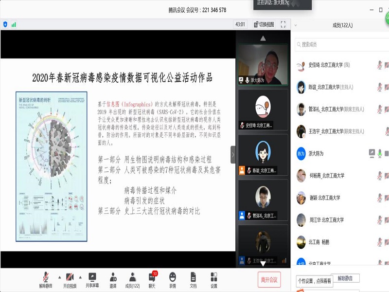 5月14日,重點(diǎn)實(shí)驗(yàn)室2020年科技平臺(tái)月活動(dòng)拉開了序幕。浙江大學(xué)CAD&CG國家重點(diǎn)實(shí)驗(yàn)室副主任陳為教授應(yīng)邀為我校師生做了題為“疫情大數(shù)據(jù)可視化”的學(xué)術(shù)報(bào)告。計(jì)算機(jī)學(xué)院、人工智能學(xué)院、電商與物流學(xué)院、傳媒與設(shè)計(jì)學(xué)院、以及校外多家單位的120余名師生在線聆聽了報(bào)告。報(bào)告會(huì)由食品安全大數(shù)據(jù)技術(shù)北京市重點(diǎn)實(shí)驗(yàn)室主任陳誼教授主持。