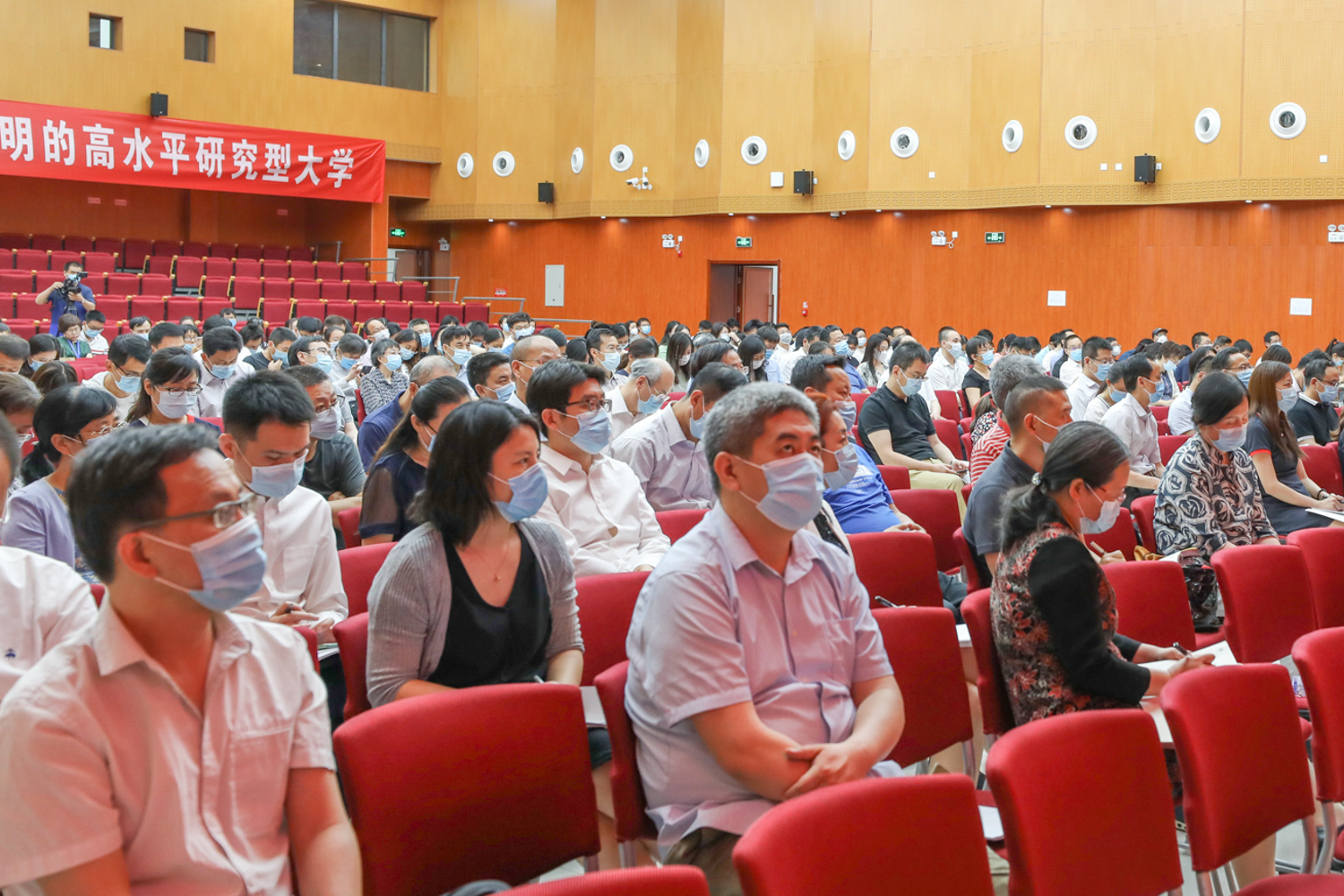 校長孫寶國院士以《統一思想,凝聚共識,明確目標,奮勇拼搏,為建設高水平研究型大學而努力奮斗》為題作動員部署。孫寶國校長闡述了此次會議的重要性和必要性,強調此次會議緊緊圍繞人才培養的根本問題,既是學校教育教學思想大學習大討論動員會,也是學校建設高水平研究型大學的啟動會,至關重要,意義重大。孫寶國校長指出,在中共北京市委教育工作領導小組印發的《北京市屬公辦本科高校分類發展方案》中,學校進入北京市高水平研究型大學的建設行列,振奮人心,來之不易,全體師生要倍加珍惜、倍加努力,要增強危機意識,學懂弄通上述文件精神,對標“一工三首”,放眼“世界一流”,制定可量化、可考核目標體系,圍繞人才培養、科學研究、社會服務、師資隊伍建設四個方面,始終踐行以學生為中心的發展思想,深入推進培養高素質創新型人才,全面實現學校人才培養“369”標志性指標,在兩年建設期間扎實開展工作,力爭取得建設新成效。孫寶國校長提出建設高水平研究型大學十大目標任務:一是要強化師資隊伍建設,堅持以自主培養為主,培養和引進相結合,鼓勵拼搏,培養和引進有家國情懷和責任擔當的優秀人才、領軍人才;二是要將博士點申報作為學校工作的重中之重,全校上下要統一思想、提高認識,舉全校之力做好博士點申報工作;三是要爭取國家級平臺,以“志在必得”的信心,全力以赴突破國家重點實驗室獲批;四是要高度重視第五輪學科評估,做好頂層設計,形成從校領導到院長再到學科負責人的責任體系,明確分工,各學科、各單位主動發力;五是要積極推進“雙萬計劃”建設,著力提高學校國家級一流本科專業點數量;六是要加快世界一流學科建設,特色學科爭取進入世界一流學科前列,其他學科要調整方向、凝練特色,按照“互補、錯位”原則,做到“人無我有”“人有我優”;七是要深入分析研究,精準發力,力促重點學科進入ESI前1%;八是要努力獲批國家級項目,特別是國家自然科學和社會科學基金項目,以申報助推學校科研發展;九是要高度重視國家科學技術獎和國家教學成果獎等國家級獎勵獎項的申報工作,科學規劃,確保取得新突破;十是要把服務北京、服務首都放到戰略高度來認識,科學研究要立足首都,要面向經濟社會發展主戰場、面向北京,科研成果轉化要首選北京,為首都“四個中心”建設做出應有的貢獻。孫寶國校長強調,高水平研究型大學建設為北工商未來發展指明了方向,為北工商“雙一流”建設帶來了機遇,全體教職工要統一思想,形成共識,齊心協力,奮勇拼搏,早日將我校建設成為特色鮮明的高水平研究型大學!