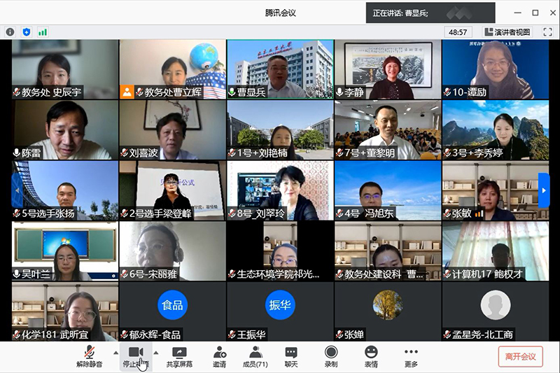 7月2日、3日,學校線上舉行首屆教學名師、教學標兵(暨第十屆青年教師教學基本功比賽)評選決賽。來自15個教學單位的47位教師通過學院的初賽最終進入學校總決賽,一展教師風采。學校副校長鄭文紅出席并致辭。比賽由教務處處長曹顯兵、副處長張敏分別主持,200余位教師觀摩了比賽。