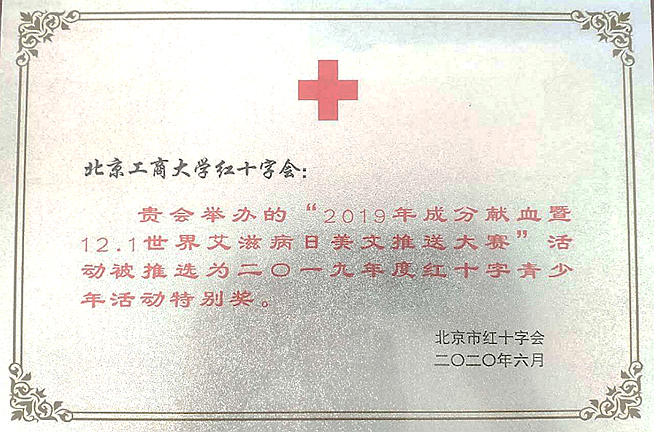 日前,北京市紅十字會組織了全市“優秀紅十字青少年活動”和“優秀紅十字青少年會員”評選,來自全市各紅十字會推薦的百余個項目參與評選。經過北京市專家評審,我校紅十字會學生分會申報的《2019年成分獻血暨12.1世界艾滋病日美文推送比賽》獲評“二零一九年度紅十字青少年活動特別獎”,成為獲得該獎項20所學校之一。我校紅十字會學生分會會長李喬同學榮獲北京市“優秀紅十字青少年會員”稱號。