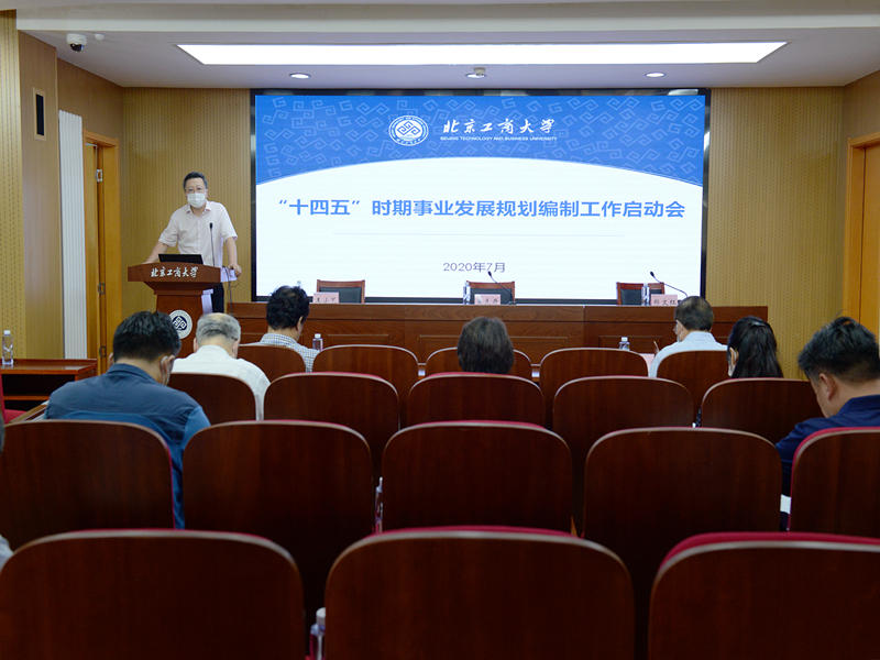 發展規劃處處長王小藝從主要任務、組織機構、規劃體系、編制要求、推進步驟、進度安排、保障機制等方面介紹了學校“十四五”時期事業發展規劃編制工作方案,對學校“1+9+17”規劃體系思路,即“1”個總體規劃、“9”個專項規劃、“17”個院(部)規劃進行了說明,并結合學校發展實際,對《北京工商大學2025行動計劃》修訂調整方案進行了布置。