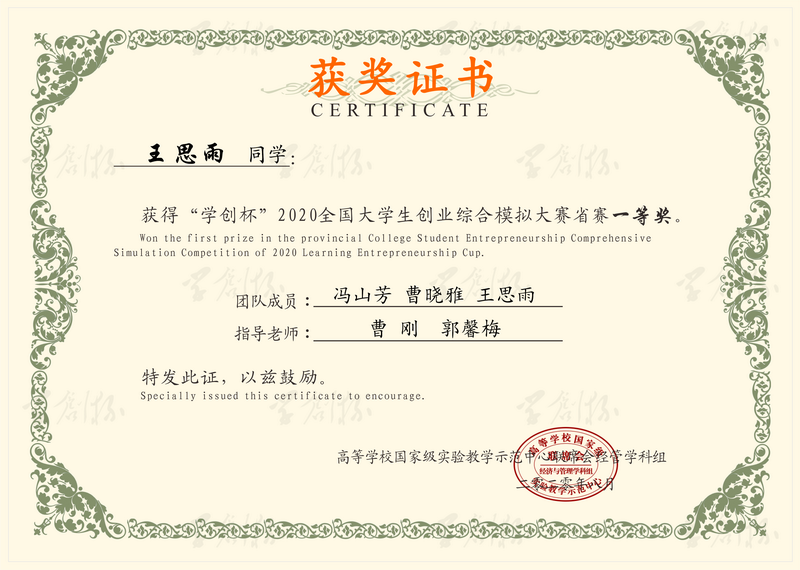 8月8日,2020年“學創杯”大學生創業綜合模擬大賽北京市總決賽落下帷幕,由經濟學院曹剛、郭馨梅和梁鵬指導的三支學生代表隊分別榮獲北京市特等獎、一等獎和二等獎,我校連續六年代表北京市晉級全國總決賽。