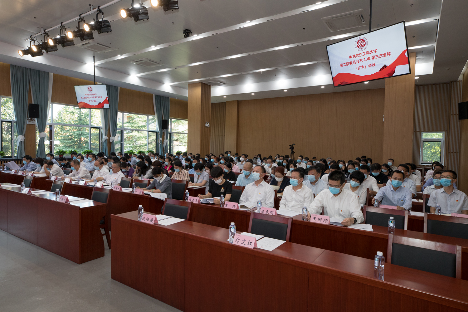 中國共產(chǎn)黨北京工商大學(xué)第二屆委員會(huì)第三次全體(擴(kuò)大)會(huì)議于9月4日在阜成路校區(qū)舉行,全面總結(jié)2020年上半年學(xué)校黨委工作,部署下一步工作任務(wù)。全體校領(lǐng)導(dǎo)、黨委委員、中層干部參加會(huì)議。黨委書記黃先開作工作報(bào)告。黨委書記黃先開、校長孫寶國分別主持會(huì)議。