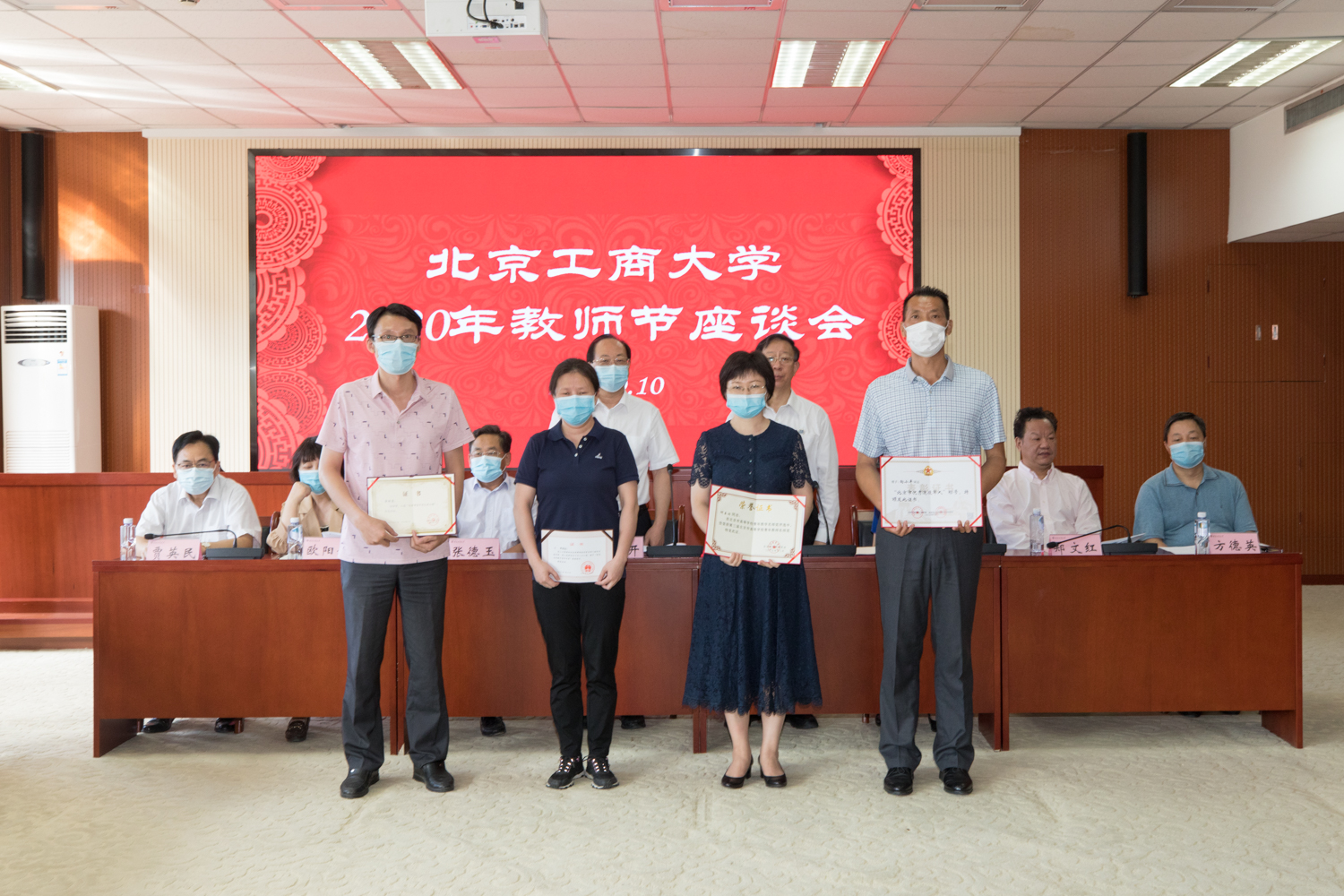 9月10日上午,歡度第36個教師節之際,學校在阜成路校區舉行教師節座談會,表彰為學校各項事業做出突出貢獻的教職工。校領導黃先開、孫寶國、張德玉、董竹娟、歐陽媛、鄭文紅、賈英民、方德英出席會議。獲獎教師和部分中層干部參會。會議由黨委副書記董竹娟主持。