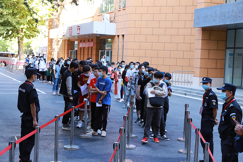 在防疫常態(tài)化的情況下,為保證考生和監(jiān)考教師的安全健康,此次考試全部為低密度考場,確保了座位之間的安全距離。在考試前14天,學校對考生進行了體溫跟蹤監(jiān)測。考試前一天,對設有考場的教學樓內(nèi)的教室及衛(wèi)生間進行了嚴格的清理、通風、消毒;同時設立了備用考場。考試當天,良鄉(xiāng)校區(qū)考試樓入口搭有體溫檢測點2個,阜成路校區(qū)搭有體溫檢測點1個,保證學生安全有序入場。