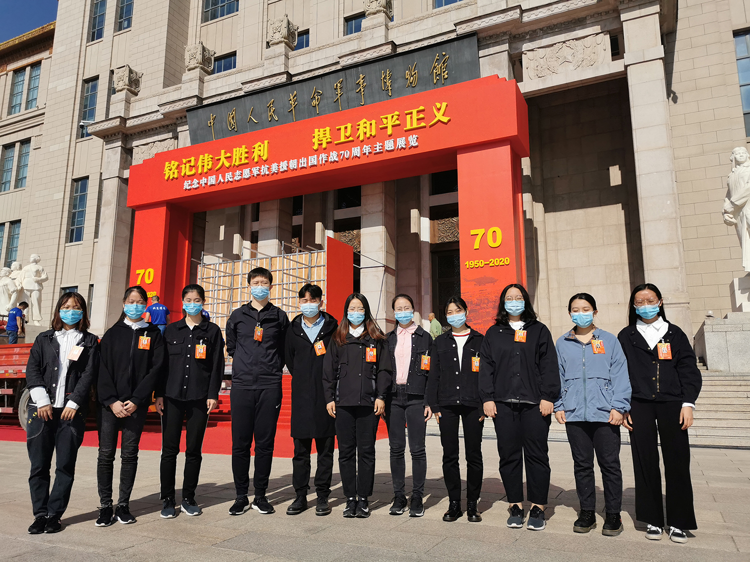 10月19日上午,“銘記偉大勝利 捍衛和平正義——紀念中國人民志愿軍抗美援朝出國作戰70周年主題展覽”開幕式在中國人民革命軍事博物館舉行,我校耿悅等10名同學,作為首都大學生代表參加開幕式。
