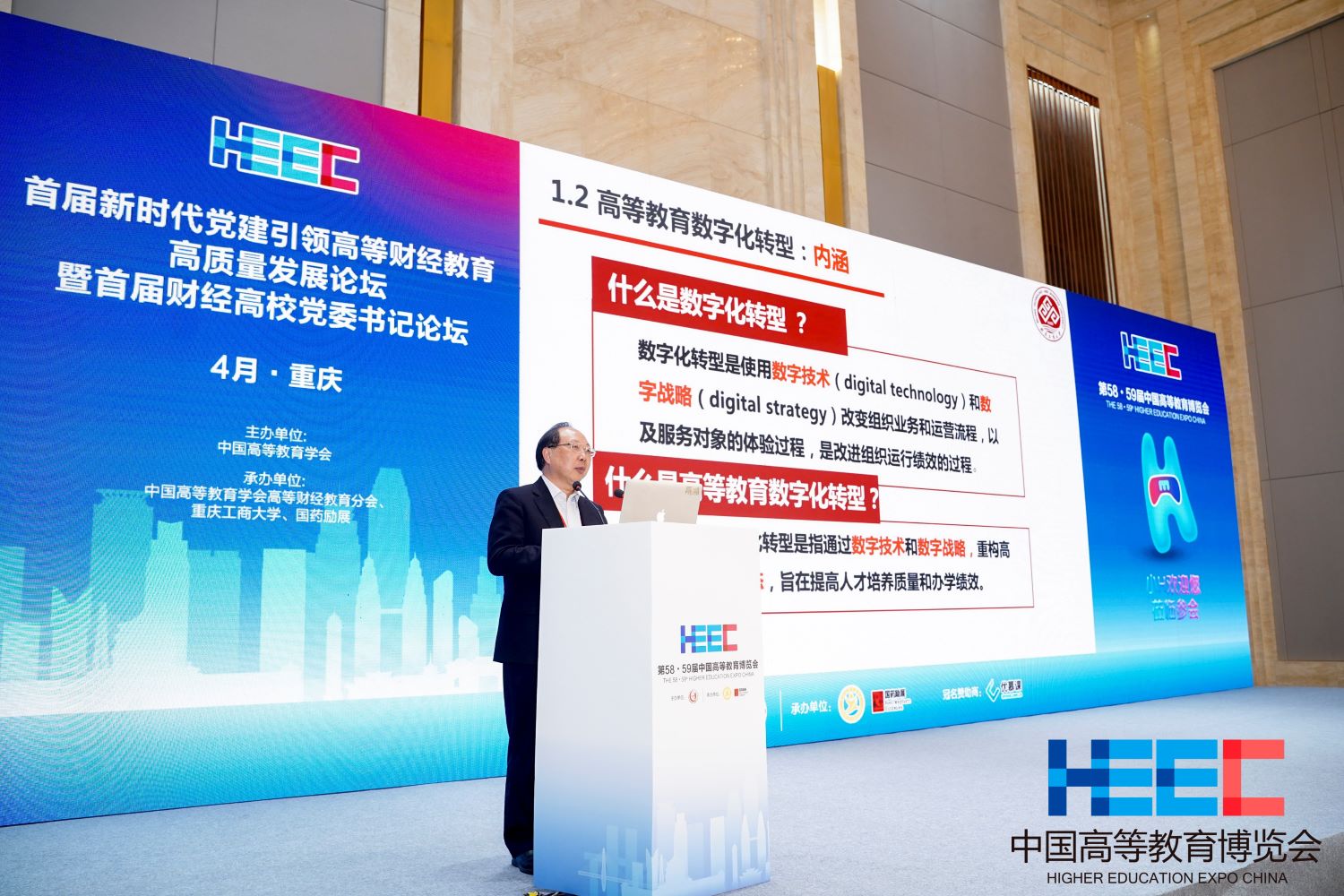 黃先開在“首屆新時代黨建引領高等財經教育高質量發展論壇暨首屆財經高校黨委書記論壇”中,以《數字賦能商科人才培養模式創新》為題,對教育數字化轉型的背景、意義和內涵進行了闡述,指出高等教育數字化轉型挑戰和機遇并存。并分別通過分析互聯網行業、電商平臺、元宇宙的發展趨勢,系統提出了數字化轉型的基本規律和四個發展階段。最后,分享了我校在新商科人才培養方面開展的探索和實踐。