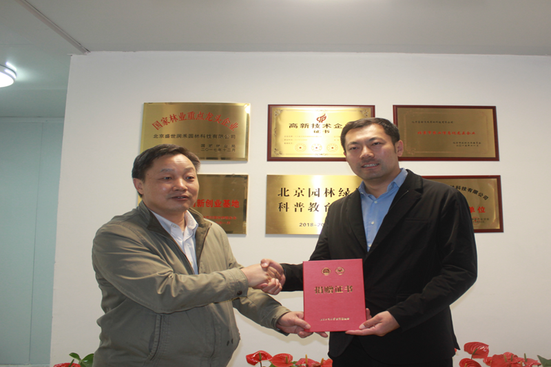 方德英副校長一行與70年校慶綠植捐贈者盛世潤禾公司有關負責同志進行了座談,就共同關心的校園綠化規劃、綠化養護等問題進行了深入討論和交流。方德英副校長對盛世潤禾公司的公益行為表示感謝,并為公司頒發了捐贈證書。