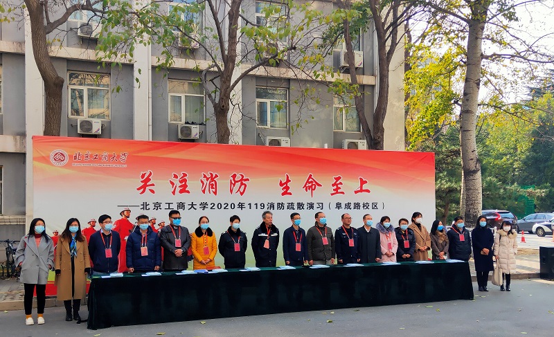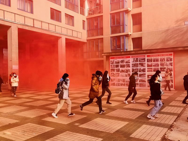 11月25日,“演習(xí)開始!”隨著一聲令下,阜成路校區(qū)防火疏散演習(xí)正式拉開帷幕。在校新生包括本科生、研究生、留學(xué)生以及維修、食堂、物業(yè)從業(yè)人員共500余人參加了演習(xí)。北京市公安局內(nèi)保單位保衛(wèi)局文保支隊(duì)副中隊(duì)長李則峰,甘家口派出所警官王高波,甘家口街道辦事處焦曉會、孟杰等應(yīng)邀出席觀摩,學(xué)校防火委員成員單位領(lǐng)導(dǎo)參加活動。