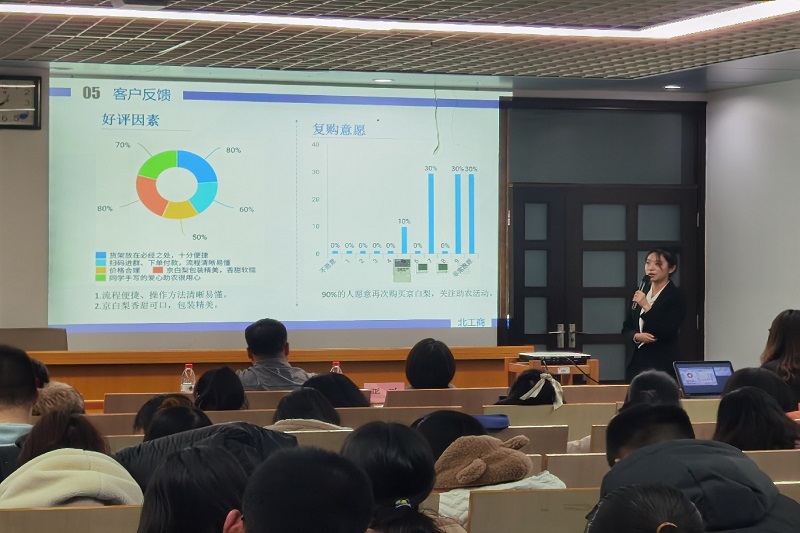 12月1日,大賽答辯會(huì)在良鄉(xiāng)校區(qū)舉行。答辯會(huì)現(xiàn)場(chǎng),各小組代表依次登臺(tái),多元化展示了本小組在大賽各個(gè)階段的表現(xiàn)和成果,專(zhuān)業(yè)評(píng)審老師根據(jù)各組展示情況進(jìn)行了有針對(duì)性的提問(wèn)。綜合答辯會(huì)現(xiàn)場(chǎng)師生評(píng)委的打分情況,與之前策劃方案賽、銷(xiāo)售賽分?jǐn)?shù)進(jìn)行加總,最終“賣(mài)梨的小姑娘”組獲得本次營(yíng)銷(xiāo)策劃大賽一等獎(jiǎng)。“白梨年華”、“七梨”兩個(gè)小組獲得二等獎(jiǎng),“梨中梨”“我們不分梨”“保二爭(zhēng)一”三個(gè)小組獲得三等獎(jiǎng)。