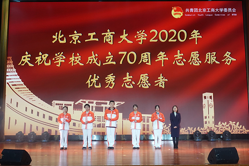 校團委青年志愿者協會秘書長王若冰宣讀了《關于表彰2020年北京工商大學志愿服務工作優秀志愿者、先進個人及先進團隊的決定》。與會領導分別為桶前值守、社區(鄉)疫情防控先進個人、2020年志愿服務工作優秀志愿者、慶祝學校成立70周年志愿服務優秀志愿者、愛國衛生運動優秀志愿者以及2020年志愿服務工作先進團隊頒獎。