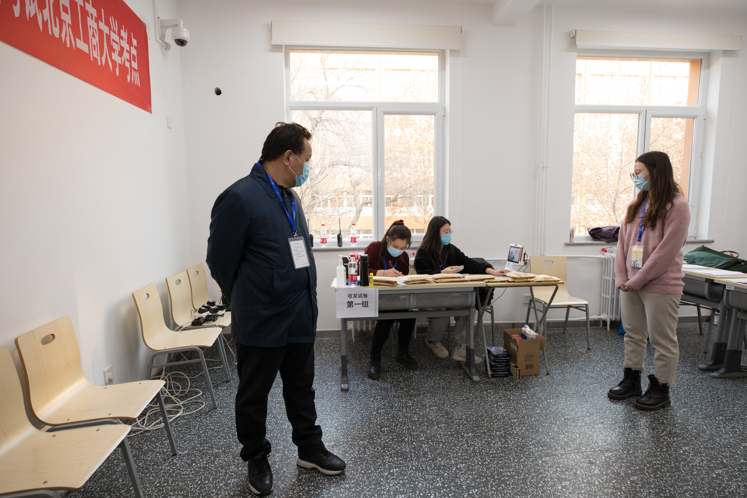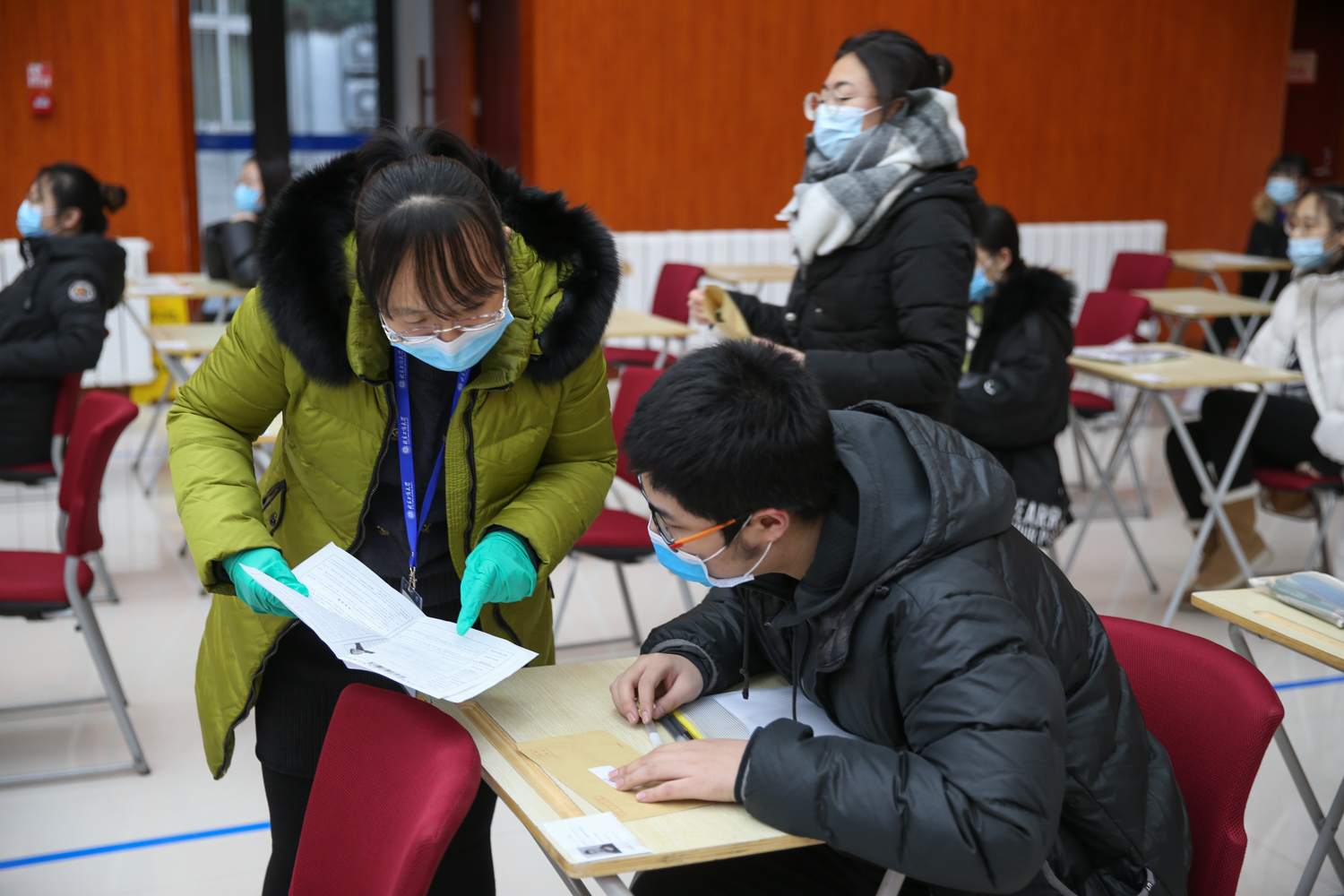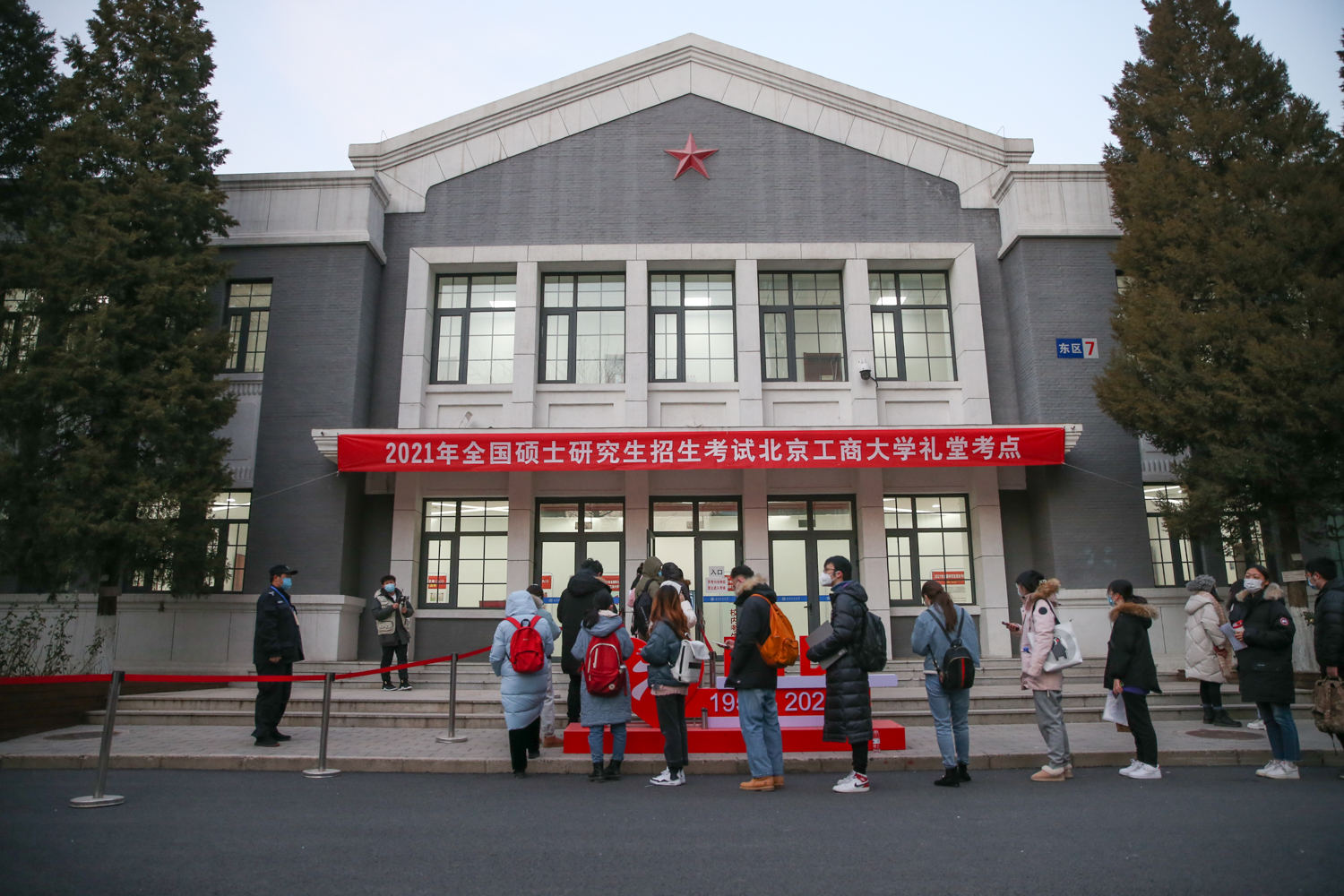 為全面落實疫情防控工作要求,學(xué)校制定《北京工商大學(xué)研究生招生考試初試疫情防控方案》和應(yīng)急預(yù)案,以最嚴(yán)格標(biāo)準(zhǔn)、最嚴(yán)密措施做好研考疫情防控工作。選聘397名教師、學(xué)生志愿者作為監(jiān)考人員和工作人員。考前,組織2021年碩士研究生招生考試考生及考試工作人員核酸檢測,共檢測人員1793人,其中工作人員397人、在校生考生1396人,實現(xiàn)“應(yīng)檢盡檢”。精心布置環(huán)境,考點內(nèi)隨處可見標(biāo)語橫幅和醒目的考場標(biāo)志標(biāo)識,制作了防疫知識相關(guān)展板提醒考生防疫不松懈。特別設(shè)置了區(qū)分校內(nèi)外考生進(jìn)出場路線,通過展板、地貼、路線圖等引導(dǎo)考生出入場,并提醒考生進(jìn)出保持合理距離,不擁擠、不聚集。在入場時嚴(yán)格把關(guān),考生需持核酸檢測陰性報告和健康寶綠碼入場,每個考試樓內(nèi)配備了高通量體溫檢測儀,切實做好體溫檢測篩查工作,確保考生安全進(jìn)入考場。配備了充足的防疫物資,明確每一個崗位的物資需求,為每個考場配置口罩、速干手消毒液,要求每位考生、考試工作人員每次進(jìn)入考場前進(jìn)行消毒。考試期間,在東西校區(qū)設(shè)置公共區(qū)域供考生休息。