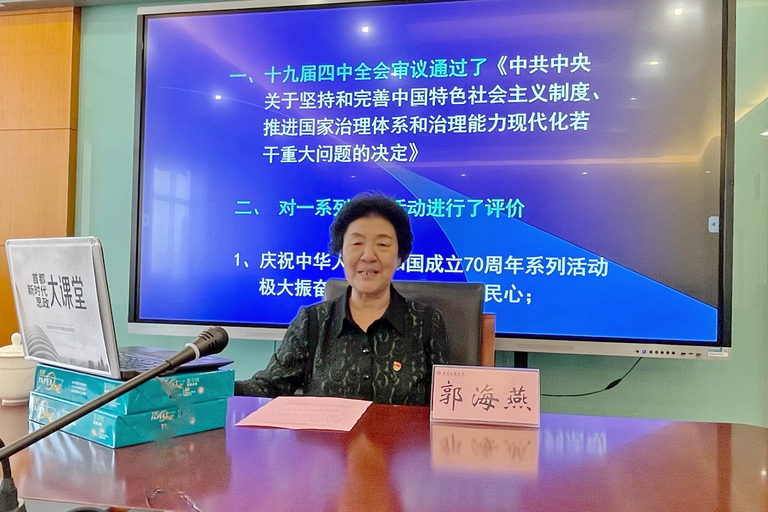 開班儀式后,中共北京市委講師團專家團成員、北京高校十九大精神宣講團成員、首都師范大學郭海燕教授為同學們作了題為《增強制度自信,做中國特色社會主義制度的堅定捍衛者》的報告。郭海燕從國防建設、航空航天、抗震救災、疫情防控等重大歷史事實出發,通過中外對比和歷史分析,生動闡釋了中國共產黨強有力的領導和中國特色社會主義制度的巨大優越性。通過此次講座,各位學員對客觀事實和制度優勢間的必然聯系有了更為透徹的理解,從而進一步增強了“四個自信”,堅定了入黨決心。